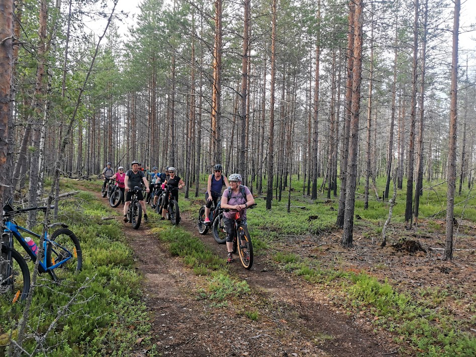 Lenkeillä tutustuttiin Nopolan eri kyliin: Hokkasenaho, Pölkki, Hokkala, Kumpula, Oikari, Mäntyperä, Koskimäki, Nurmijoki ja Peuralinna. Poljettavaa maastoa oli monenlaista: kelirikon murjomaa soratietä, hiekkatietä, asfalttia, neulaspolkuja, hiekkaharjuja ja jopa pyörän tunkkausta metsässä. Sekin kuuluu maastopyöräilyn luonteeseen.