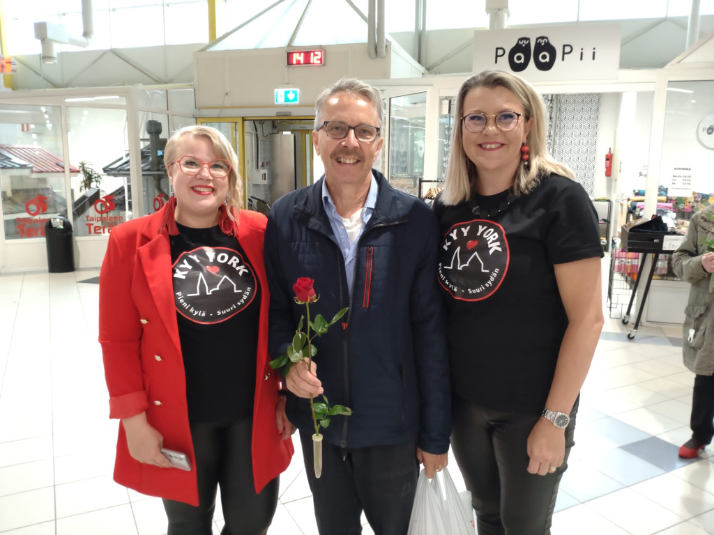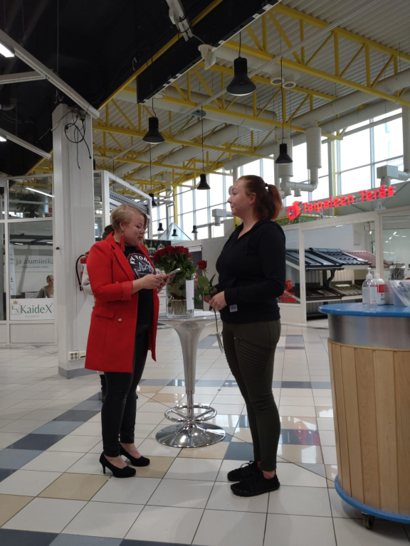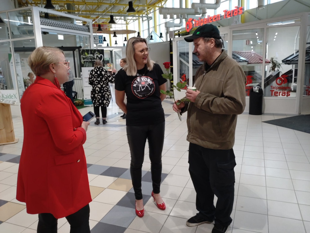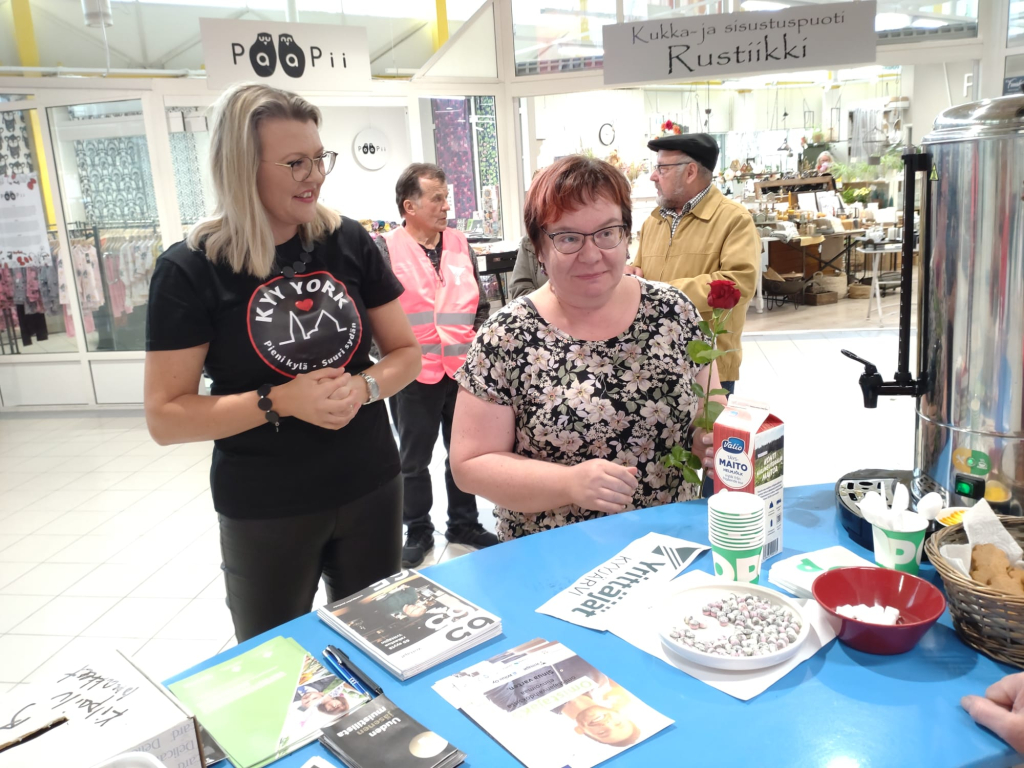 Kyyjärven kunnan Tiina ja Teija jakoivat ruusuja yrittäjille.