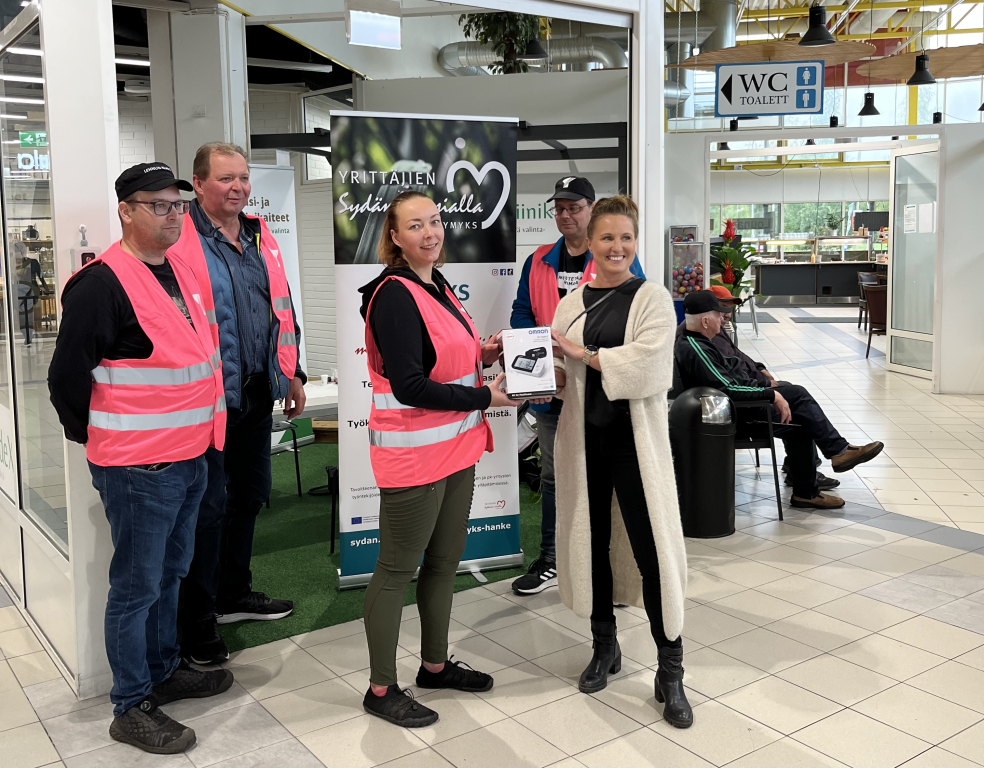 Lisäksi mukana oli Hymyks-hyvinvointihankkeen edustajat, jotka tekivät halukkaille terveysmittauksia Lopuksi yhdistys sai hankkeelta omakseen verenpainemittarin, jota yrittäjät saavat lainata.