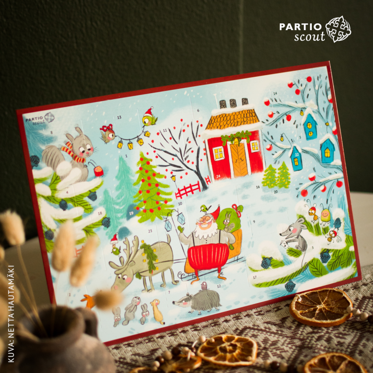 Voit ostaa kalenterin myös verkossa https://www.adventtikalenteri.fi/osta-partiolaisten-adventtikalenteri/