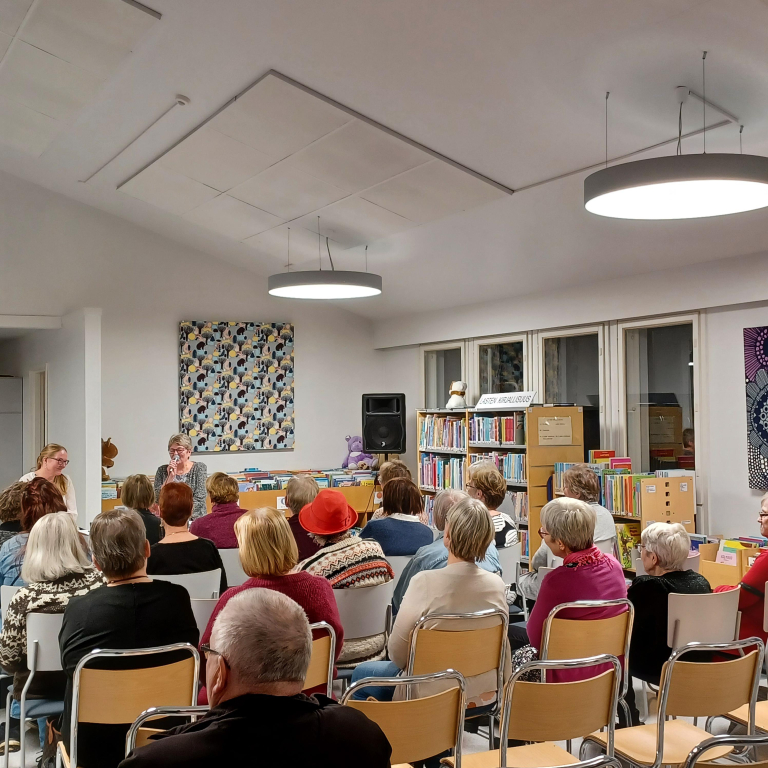 Kahtena pimeänä loppusyksyn iltana olemme saaneet nauttia kirjailijavieraista. Leena Lehtolaisen vierailu järjestettiin Rientolassa, jossa ilta aloitettiin nauttimalla mehua ja piirakkaa. Sitten Lehtolainen kertoi kirjoittamisesta ja kirjoistaan. Ammattimainen ja kiinnostava esiintyminen sai yleisön mukaan keskusteluun ja kysymyksiä kirjailijalle tuli paljon. Tämä oli hieno ilta!