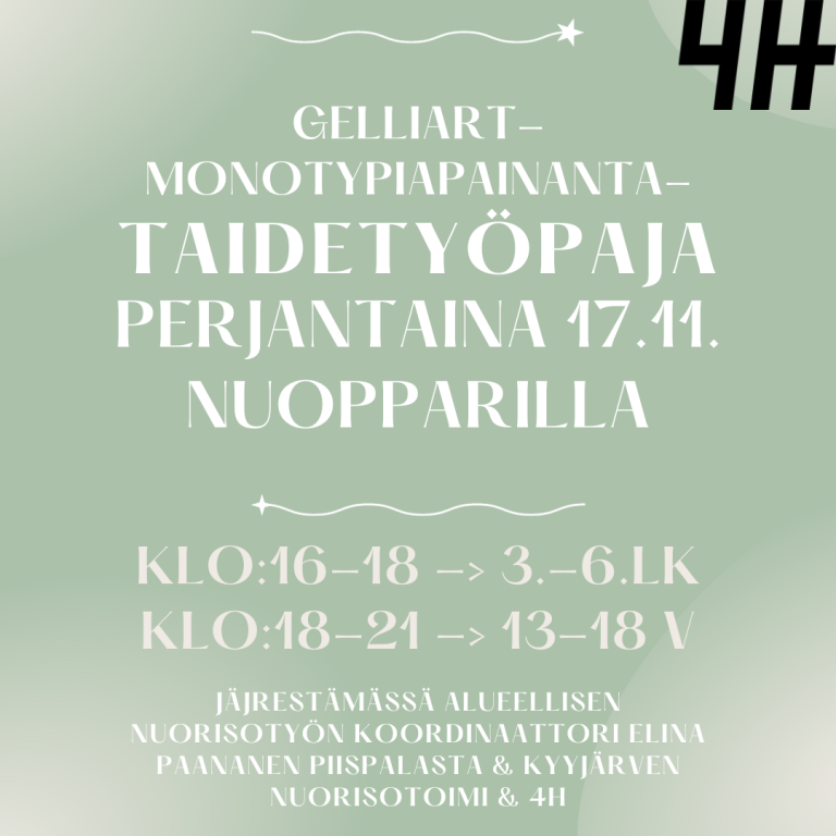Nuopparille tulossa gelliart monotypiapainanta-taidetyöpaja perjantaina 17.11.