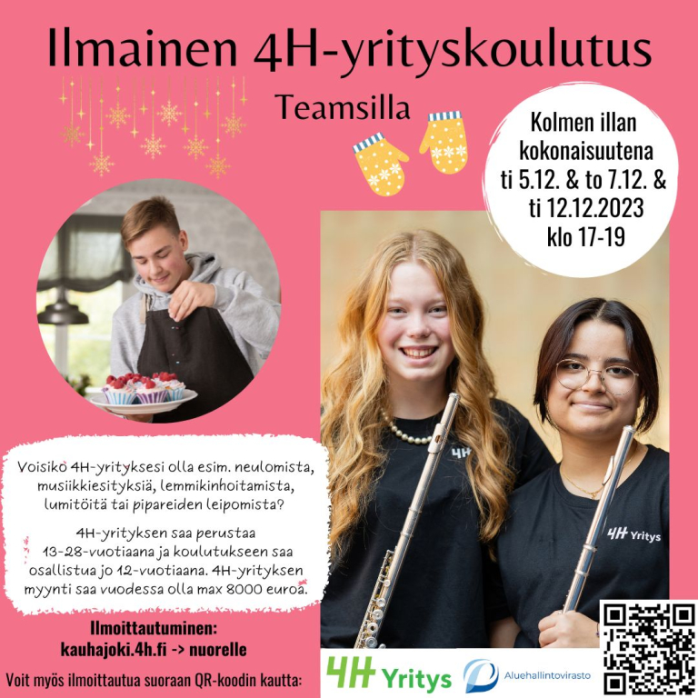 Lisätiedot ja ilmoittautuminen: kauhajoki.4h.fi -> nuorelle, tai suoraan kuvan QR-koodin kautta