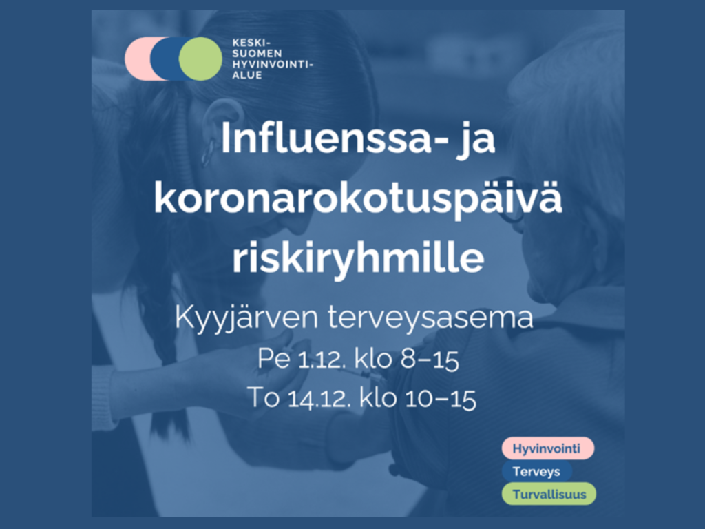 Alle 7-vuotiaiden, koululaisten, opiskelijoiden ja raskaana olevien influenssa- ja koronarokotukset Kyyjärvellä