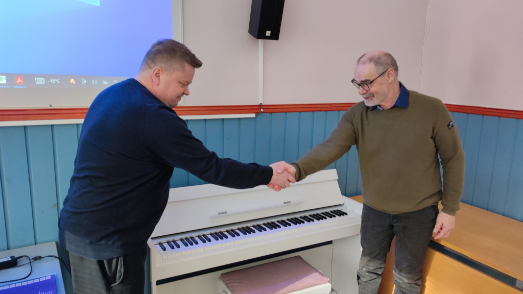 Joten hän aktiivisena puuhamiehenä keräsi avustuksia soittopelin hankintaan eräkartanolle.