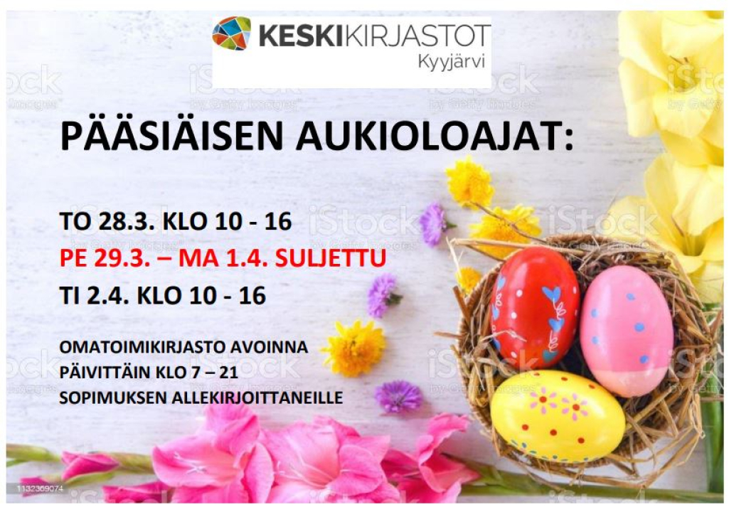 Kulttuuri 26.03.2024 Kyyjärven kunta Maarit Ohranen Hyvää Pääsiäistä! Kirjastolaiset toivottavat kaikille oikein Hyvää Pääsiäistä! Jaa sosiaalisessa mediassa Aihealueen yhteistyöyritykset