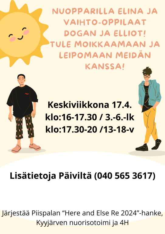 Klo:16-17.30 välinen aika on varattu 3.-6.-luokkalaisille ja klo:17.30-20 välinen aika 13-18-vuotiaille.