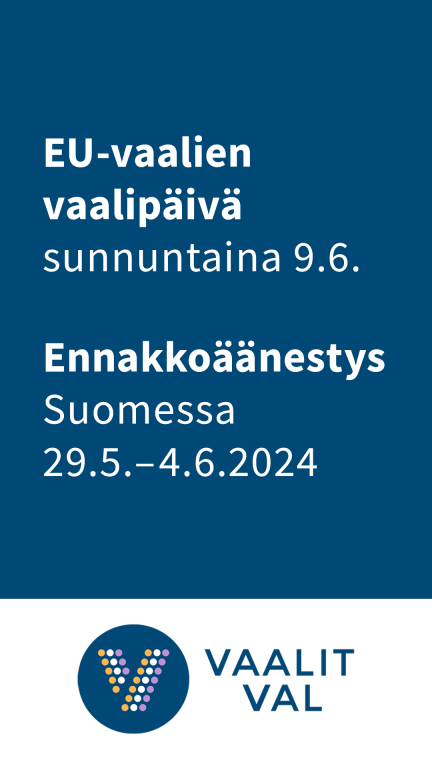 Europarlamenttivaalien ennakkoäänestys on 29.5.-4.6.2024 välisenä aikana. Varsinainen vaalipäivä on sunnuntaina 9.6.2024.