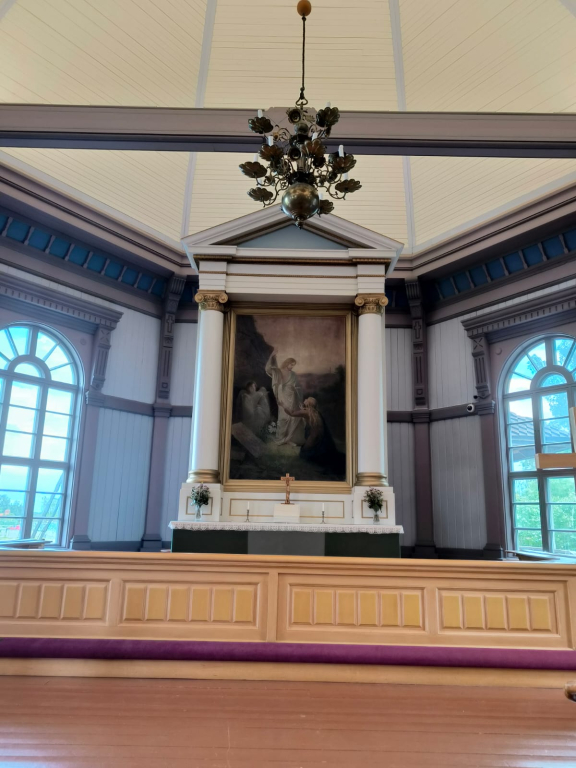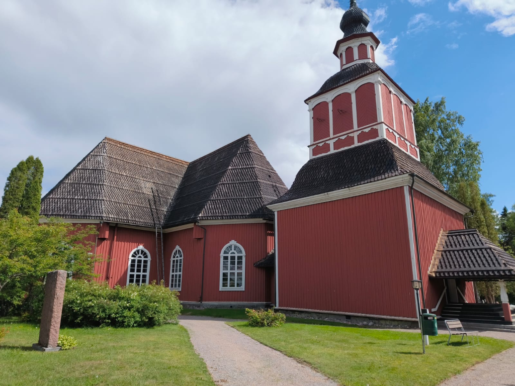 Seuraavaksi päämääräksi otettiin Virtain 250-vuotias kirkko. Se oli iso. Sisälle mahtuu 690 kuulijaa. Lauloimme Suvivirren. Viime vuonna käytiin uudessa Ylivieskan kirkossa ja nyt vanhassa Virtain kirkossa. Kyllä täytyy sanoa, että vanha on aina sentään vanha! Ja kaunis!