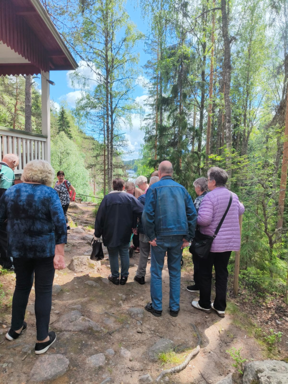 Killinkoski oli jo vähän kotona päin ja sieltä lähdimme vielä vähän enemmän kotia kohti, Lehtimäelle. Joka käänteessä laulettiin! Honkosen Terttu järjesti meille jännitystä pitämällä meille ilmaiset arpajaiset. Kotimatkalle asti saatiin jännittää, miten käy. Monikin uneksi saavansa Tertun maalaaman Jaakobin liljan, mutta vain yksi on voittaja! Ja se meni kuljettajallemme Jari-Pekalle! No, suomme sen J-P:lle. Niin hyvin ja turvallisesti meitä kuskasi, ettei pelottanut yhtään! Kiitos Terttu ja Jari-Pekka!