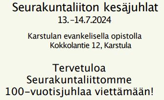 Juhla jatkuu sunnuntaina 10.00 Jumalanpalveluksella. Päätösjuhla alkaa klo 13.30.