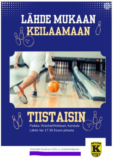 Kimppakyyditykset starttaavat vanhan "esson" pihasta klo 17.30. Keilakausi aloitetaan ti 3.9.2024