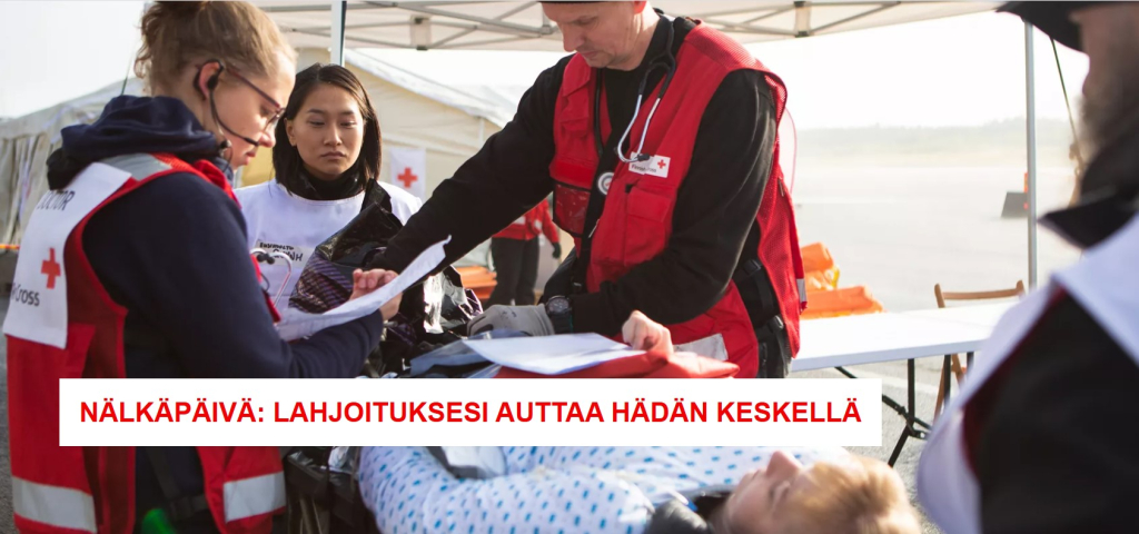 Nälkäpäivänä kerätään mahdollisimman paljon lahjoituksia, jotta Punainen Risti voisi huolehtia mahdollisimman monesta kriisin keskelle joutuneesta missä päin maailmaa tahansa tai täällä Suomessa. Osallistumalla keräykseen autat kanssamme nyt ja huomenna.