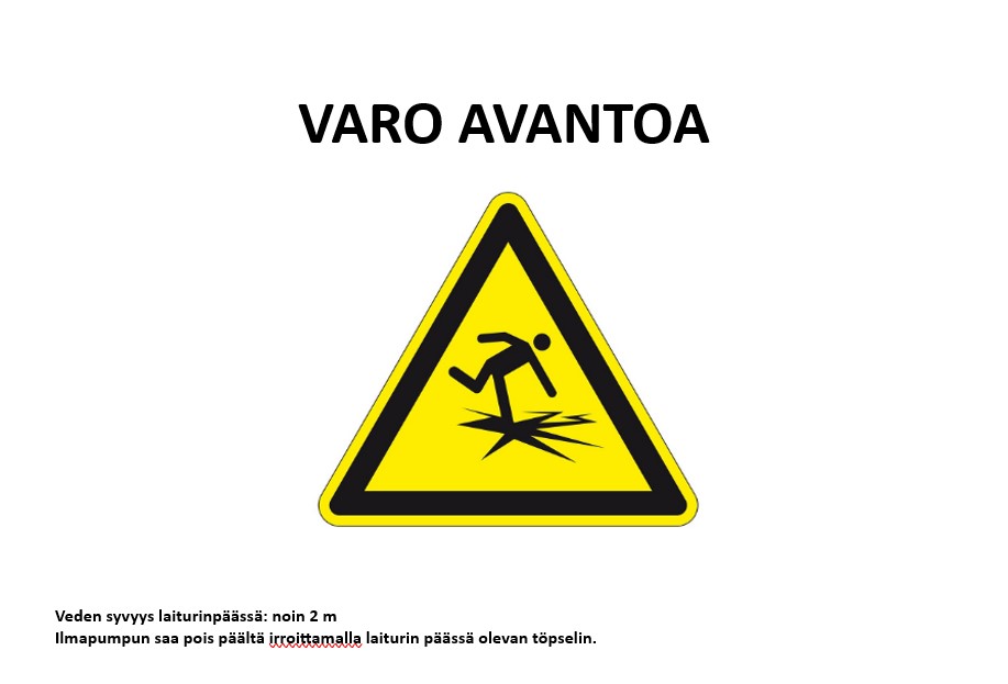 Ja huom: Älä mene uimaan yksin. Suurin riski on laiturilla ja/tai portaissa liikkuessa. Avantouintipaikalla uidaan omalla vastuulla.