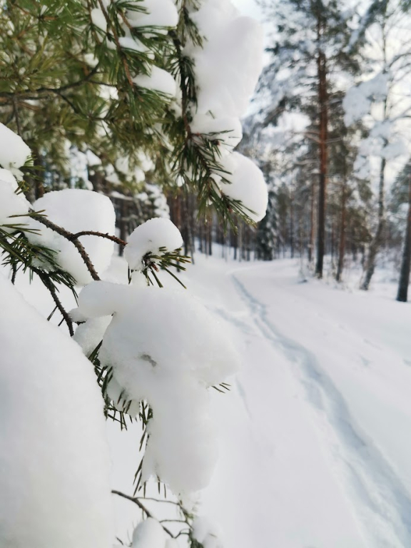 4. Talvinen maisema on kaunis ja rauhoittava. Luonnossa liikkuminen voi auttaa rentoutumaan ja vähentämään stressiä.