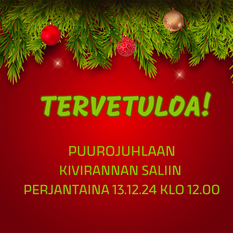 Lämpimästi tervetuloa yrittäjien, yhdistysten edustajien ja kunnan päättäjien yhteiseen Puurojuhlaan Kivirannan saliin perjantaina 13.12.2024 klo 12.00