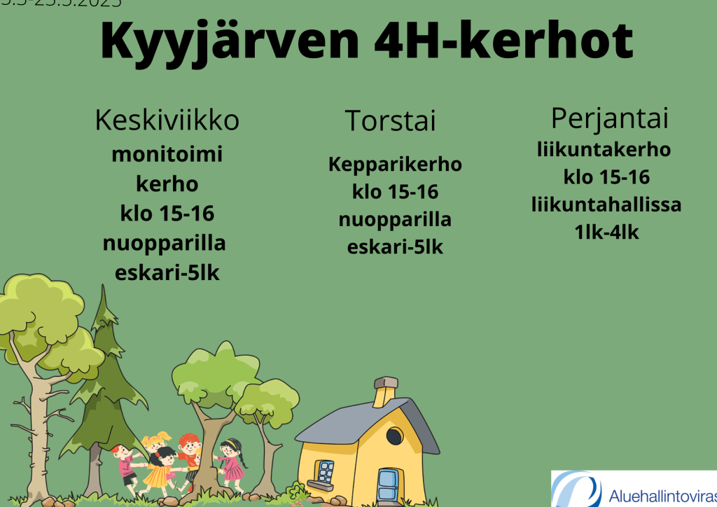 Lapset ja nuoret 20.02.2025 Karstulan-Kyyjärven 4H-yhdistys ry Kaisa Hietalahti 4H-kerhot Kerhot alkavat viikolla 10 Jaa sosiaalisessa mediassa Aihealueen yhteistyöyritykset