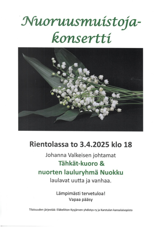 Tilaisuuden järjestää: Eläkeliiton Kyyjärven yhdistys ry ja Karstulan kansalaisopisto