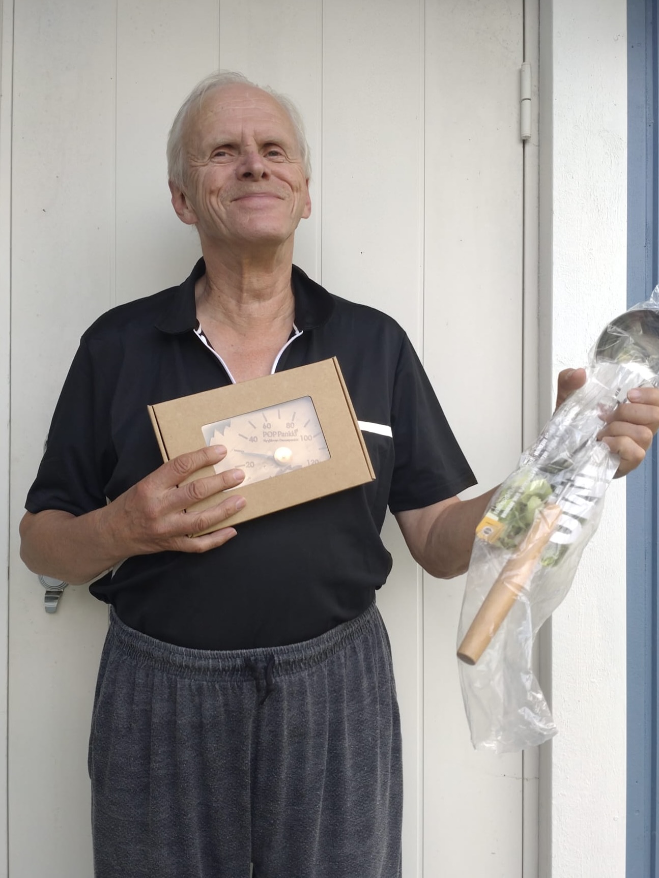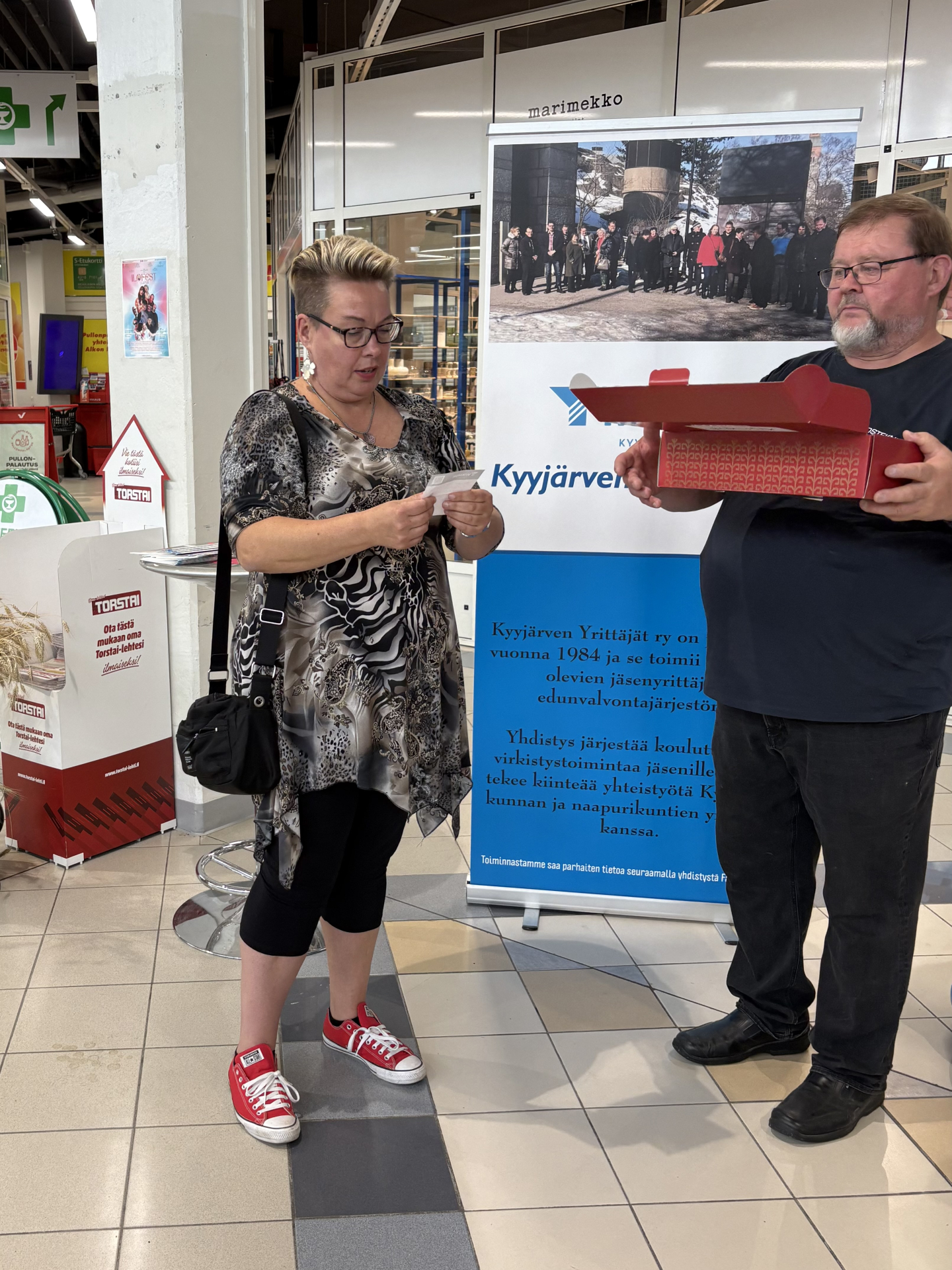Arvonnassa oli hieno palkinto, POP Pankki Kyyjärven lahjoittama saunakauha ja -mittari. Arvonnassa kysyttiin, mikä on Kyyjärven vanhin toimivat yritys. Moni sen kyllä tiesikin, se on Kyyjärven Osuuspankki - POP Pankki Kyyjärvi Karstula. Pankki on perustettu vuonna 1922 ja se viettikin 3 vuotta sitten 100-vuotisjuhlaa. Eniten arvuuteltiin Betset Oy:tä vanhimpana, se on perustettu 1950.