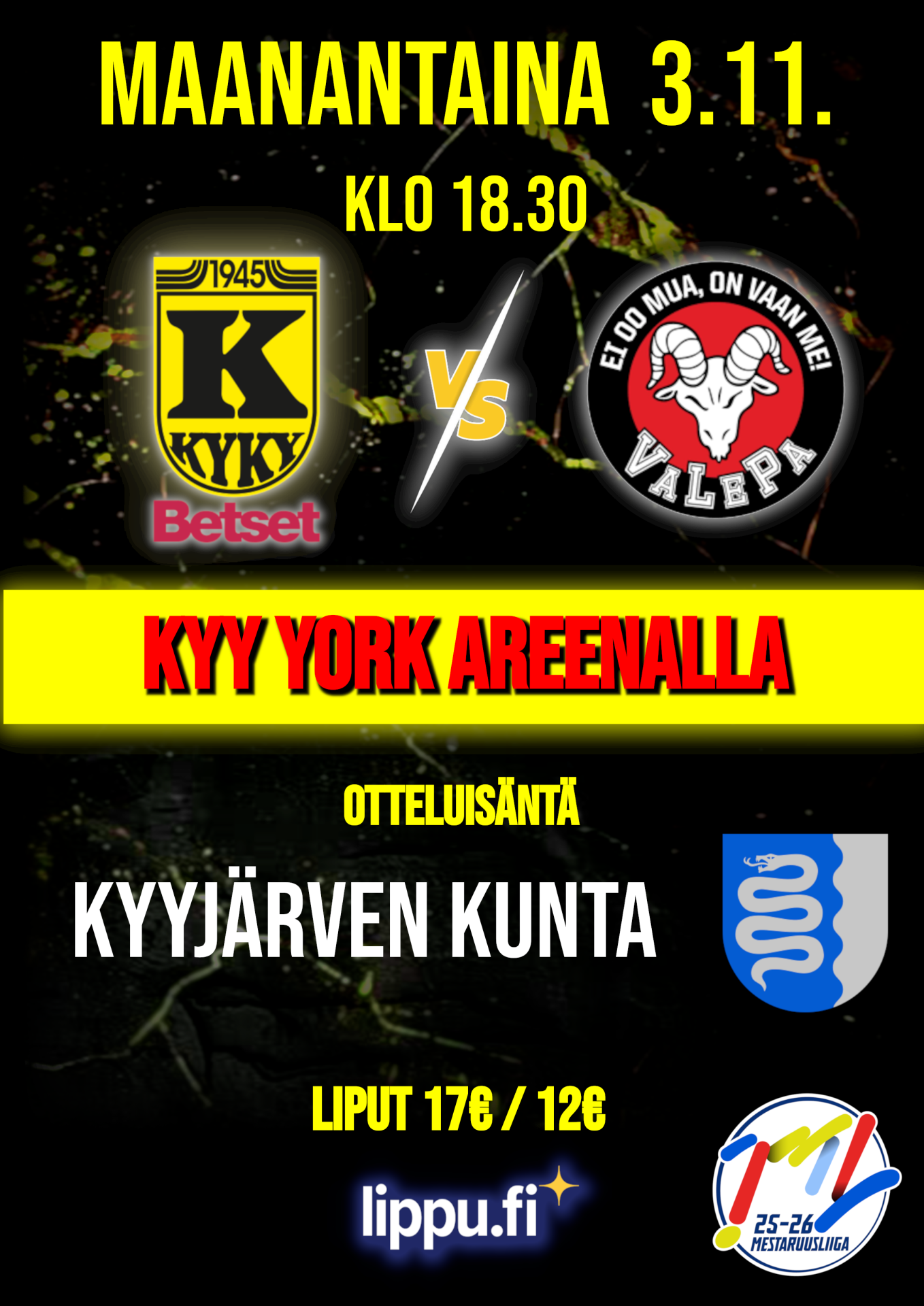 Maanantaina 3.11. Klo: 18:30 Kyy York Areenalla
