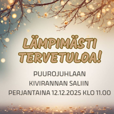 Lämpimästi tervetuloa yrittäjien, yhdistysten edustajien ja vapaaehtoistoimijoiden yhteiseen Puurojuhlaan Kivirannan saliin perjantaina 12.12.2025 klo 11.00