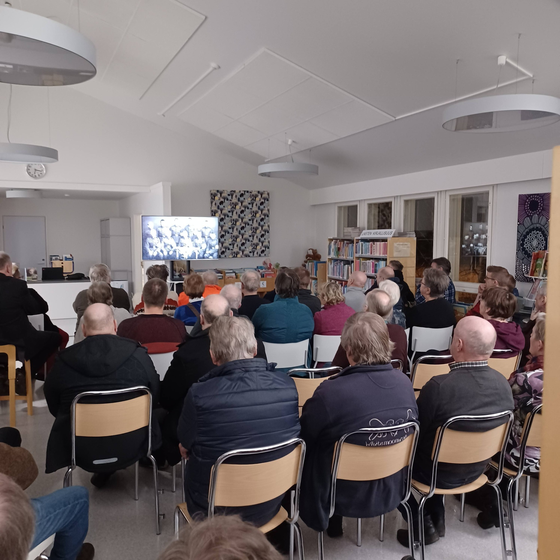 Tapahtuminen vuosi käynnistyi tiistaina 13.1. dokumentti-illalla. Tällä kerralla saimme nähdä dokumentin: Repunkannosta – Kaukopartioritari Paavi Suoranta. Dokumentin tekijöistä paikalla olivat Jussi Halttunen ja Raimo Salo. Tätä hienoa dokumenttia oli katsomassa ihastuttavan suuri yleisömäärä. Enempää ei juurikaan olisi tilaan mahtunut.