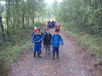 ![]() Syysretkellä mekinSamana päivänä kun Nopolan koulun isommat oppilaat olivat syysretkellä Salamajärven kansallispuistossa, niin me koulun pienemmät (eskari, 1.lk ja 2.lk) olimme siellä myös! Menomatkalla kohti Sysilampea oli jokaisella jo iloinen ja odottava mieli. Linja-auto jätti meidät Sysilammen portille ja siitä käveltiin n. puoli kilometriä Sysilammen rantaan. Aluksi leikimme yhteisiä leikkejä, jonka jälkeen suunnistettiin metsään. Kumpparit kopisivat kivasti pitkospuihin ja iloinen puheensorina täytti suomaisen metsikön. Onneksi äkkiä kuitenkin havahduttiin siihen, että ei kuule eikä näe luonnon ihmeitä, jos ei malta olla hetken hiljaa. Lasten luontopolku jatkui ohi rahkasammalkivikon, jossa menninkäiset ja keijut malttoivat pysyä piilossa. Nähtiin palokoroja puissa, joutsenia ja sudenkorentoja lammella, muurahaisia työn teossa ja paljon muuta kiinnostavaa. Reilu tunti vierähti luontopolulla ja sitten maistukin jo koululta evääksi saadut sämpylät, mehut ja makkarat. Repuissa odottivat kuitenkin ne omat herkkueväät ja niitä mussutettiinkin sitten loppuaika ja loput vielä linja-autossa kotimatkalla. Nuotio- ja makkaramestareille Janille, Jari-Pekalle ja Erkille kiitti vielä kerran hikisestä urakasta. Ja muille vanhemmille: kiva kun läksitte mukaan! |