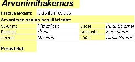 ![]() Uusia neuvoksia Kuusniemelle?Kuntamme kunnallis- ja seurakuntaelämä saivat aikamoisen piristysruiskeen, kun noissa molemmissa.. ... yhteisöissä tehtiin samaan aikaan, ilmeisesti toisistaan tietämättä, kaksi arvonimi – ehdotusta. Armas Hakkaraiselle ehdotettiin haettavaksi kunnallisneuvoksen arvonimeä, ja dir. cant. Ilmari Piiparisesta halutaan tehdä musiikkineuvos. Kuten perinteisesti on ollut tapana kunnassamme, niin lehtemme postiluukusta tulvahti sekä nimettömiä että allekirjoitettuja kannanottoja aivan kahlattavaksi asti. Julkaisemme niitä sananvapauden nimissä kaikki painokelpoiset tekeleet. Päätoimittaja käytti asemansa suomaa oikeutta salata tietolähteensä. Kuusniemellä on sikäli erikoinen tilanne, että päätoimittaja on tähän saakka salannut myös oman henkilöllisyytensä. (Taittajan huomautus.) Palaamme asiaan lähipäivien aikana. |