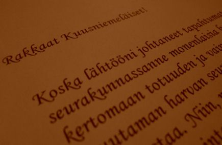 ![]() Rovasti Poutiaisen postyymi kirjeValma Ala-Viehko – Poutiainen on luovuttanut julkaistavaksi miesvainajansa lähettämättömän kirjeen, ..... ... jonka tämä oli kirjoittanut Kylmäkoskella pian sen jälkeen, kun oli palanut Kuusniemeltä seuraajansa Matias Pohdon ja silloisen kulttuurisihteerin Suvi Aaltosen vihkiäistilaisuudesta. Valma kertoi nähneensä unen, jossa rovasti pyysi häntä toimittamaan lopultakin kirjeen perille. Tässä kirje sanasta sanaan sellaisenaan. Kirje alkaa: Kylmäkoskella Talvisodan alkamisen muistopäivänä 30.11.1998 Rakkaat Kuusniemeläiset! Koska lähtööni johtaneet tapahtumat ovat herättäneen seurakunnassanne monenlaisia huhuja, omatuntoni vaatii minua kertomaan totuuden ja vain totuuden. En itseni vuoksi, vaan niiden muutaman harvan seurakuntalaisen vuoksi, jotka uskalsivat minua puolustaa. Niin, muutaman todella harvan, sillä kuten sanotaan, niin helpointa on ulvoa susien mukana. Kuten kaikki hyvin tietävät, niin palvelin seurakuntaa ja seurakuntalaisia viisitoista pitkää vuotta. Edellisestä seurakunnastani, joka sijaitsi eräässä suurehkossa kaupungissa, olin lähtenyt vakaasti päättäneenä, että hoidan vastaisuudessa parhaan kykyni mukaan kirkollista tehtävääni, ja jätän maalliset asiat niiden hoidettaviksi, joilla on siihen palava halu, kyvyistä riippumatta. Hakeuduin Kuusniemelle nimenomaan sen vuoksi, että uskoin maaseudun rauhasta löytäväni pilaantumattomia lähimmäisiä, joilla elämän arvot ovat kohdallaan, ja kaikenlainen juonittelu vierasta. Niin sinisilmäinen idealisti vielä silloin olin, mutta en häpeä sitä tunnustaa. Minut oli siinä kaupunkiseurakunnassa luokiteltu vaikeaksi luonteeksi. Olkoon niin, sillä mitäpä painoa ihmisen omalla käsityksellä itsestään on. Mehän selitämme omat tekomme parhain päin, jopa itsellemme, saati muille. Ehkä minussa oli liikaa nuoruuden kiivautta ja ehdottomuutta, ja lähdin julistamaan totuutta ja tuomiota voimalla ja sotaväellä, kuten kuvaannollisesti sanotaan. Mutta sanonpa vieläkin, että olipa juonittelu ja omanvoiton pyynti saanut kuvottavat mittasuhteet. Tämä sivustakatsojan rooli onnistuikin varsin pitkään, etenkin kun halusin nähdä uuden seurakuntani odotukseni mukaisena. Sitä se varsin pitkälle olikin, kansa oli vakaata ja lainkuuliaista. Kunnes alkoi tuo taistelu Urmaanlinnan tontista. Kerrottakoon, että kunnan rakennuslautakunnan puheenjohtajana toimi silloin kauppias Toivo Jortikka, joka oli Urmas Hakkaraisen täysin pitävässä talutusnuorassa. Sama koski lautakunnan muita jäseniä enemmän taikka vähemmän. Sanomattakin on selvää, että rakennuslupa myönnettiin ilman soraääniä. Tämä siitä huolimatta, että Urmaanlinnan pohjoisin nurkka tulisi nousemaan vain viidentoista metrin päähän lähimmistä sankarihaudoista. Kirkon seinään etäisyyttä olisi kaksikymmentä ja viisi metriä. Mainittakoon, että kirkkovaltuuston puheenjohtajana toimi Hillevi Jortikka, joka oli miehensä tavoin täydellisen solidaarinen Hakkaraisen ns. dynastialle. En saanut valtuustolta tukea ajatuksilleni. Olin siis pakotettu toimimaan yksin, täysin omissa nimissäni. Aluksi puhuin asiasta hyvinkin maltillisesti, mutta tajuisin pian että U. Hakkarainen aikoi kylmästi kävellä ylitseni. Sanoin hänelle suoraan, että omatuntoni ei sallisi minun katselevan äänettömänä rakkaan kirkkomme häpäisyä. Siitä hetkestä lähtien olin merkitty mies. Hakkarainen sanoi minulle kahden kesken niinkin ajattelemattomasti, että rovastin omatunto näyttää sallivan yhtä ja toista ilman minkäänlaista kipua, ja kun kysyin mitä hän tarkoitti, hän yksinkertaisesti väitti minun elävän kielletyssä suhteessa taloudenhoitajani neiti Ala-Viehkon kanssa. Hän jopa väitti, että se oli kaikkien seurakuntalaisten yhteinen mielipide. Punastun vieläkin kun sitä väitettä ajattelen. Olin kuvitellut, että minulla oli paljon ystäviä seurakunnassa, ja lojaalisuutta kyllä löytyikin. Nimittäin sen lajin lojaalisuutta, joka on kaikkein tuhoisinta. Ihmiset kuvittelevat, tai haluavat kuvitella, että kun ei oteta kantaa mihinkään, ollaan puolueettomia ja vapaat kaikesta vastuusta. Välinpitämättömyys on eräs pahuuden ilmenemismuoto, joka on hyveen kaapuun puettuna jää monilta huomaamatta. Tällaista lajaalisuutta siis kohtasin seurakuntani taholta. Sattui monia tapahtumia, joita en mielelläni muistele. Pieniä ja jotenkin jopa säälittäviä sattumuksia. Soutuveneeni katosi, kolme katiskaani löysin rannalta ruttuun poljettuina, autoni kumit tyhjenivät yön aikana useamman kerran, pappilan portaille ilmestyi tyhjiä olutpulloja, ja neiti Ala-Viehko sai nimettömiä kirjeitä joissa häntä syytettiin epäsiveellisestä elämästä. Neiti Ala-Viehkoa, jota moraalisempaa ihmistä en saattanut kuvitella. Neljätoista vuotta saman katon alla, voi sitä unettomien öitten määrää! Hän oli yksi niistä neljästä seurakuntalaisesta, jotka uskalsivat julkisesti puolustaa minua. Kerrotaan, että hän olisi jopa lyönyt sateenvarjollaan Hakkaraista, mutta tämä on luonnollisesti Hakkaraisen oma versio tapahtuneesta. Silloinen neiti kertoi vain heristäneensä sateenvarjoaan tultuaan pimeässä Hakkaraista vastaan. Entä keitä olivat ne kolme muuta puolustajaani? Lääkäri Voivalin, joka ei koskaan käynyt kirkossa, Raineri Mielonen, sekä seurakuntamme kanttoriurkuri Piiparinen. Kaikilla jotensakin arveluttava maine: Piiparisella oli ns. kosteusongelma, tohtori Voivalinia pidettiin paatuneena jumalankieltäjänä, ja Raineri Mielosta pelkästään paatuneena, koska hän alusta saakka akiteerasi Hakkaraisen hankkeita vastaan, eikä kallistanut korvaansa syndikaatin houkutuksille. Eli hieman kärjistetysti sanoen, pitäjän syntiset uskalsivat nousta vääryyttä vastaan, samaan aikaan kun hurskaat nukkuivat hyvä omatunto päänalusenaan. Piiparinen saatettiin nopeasti takaisin ruotuun uhkaamalla tuota tunneherkkää miestä lopputilillä,