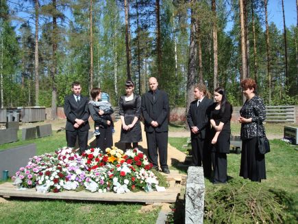 ![]() Johanna Ahtolahti saateltiin haudan lepoonJohanna Elisabet Ahtolahti e. Tikkanen siunattiin Kyyjärven kappelissa lauantaina 22.5.2010. Hautauksen jälkeen oli muistotilaisuus kirkon seurakuntasalissa. Johanna Ahtolahti syntyi Elsa ja Matti Tikkasen ainoana lapsena 3.11.1920 Sahapakan vanhaan tupaan. Forsbackan eli Koskimäen Sivulassa oli Johannan koti ja elämäntyö. Elsa äiti toimi seurakunnan pyhäkoulunopettajana 41 vuotta. Johanna kävi kansakoulun Kyyjärvellä ja oli koulukortteeria tätiensä luona Sahapakalla. Rippikoulun hän kävi Karstulassa ja muisteli lämmöllä rippipappiaan Uuras Saarnivaaraa. Avioliiton Johanna solmi oman kylän pojan, Väinö Ahtolahden, kanssa talvella 1953. Avioliitosta syntyi Eeva-Liisa tytär. Elämäntyön Johanna teki kotitilallaan Sivulassa yhdessä Väinö puolison kanssa. Maatalon emännän ja äidin työt ovat olleet moninaiset ja oman lisänsä ovat sairaudet tuoneet elämään. Vanhuuden tultua he luovuttivat tilan hoidon Eeva-Liisalle ja Hemmolle. Keväällä Johanna ja Väinö muuttivat Kyyjärvelle, mutta se aika jäi lyhyeksi Väinö puolison sairauden tähden. Väinö nukkui pois 28.8.1989. Johanna palasi Sivulaan ja sai vielä elää Eeva-Liisan perheen kanssa rikasta elämää hoitaen lastenlapsiaan. Keväällä 2006 Johanna muutti Pienkotiin, terveyden heikentyessä Kivirannan vanhainkotiin ja hän nukkui pois 25.4.2010 Karstulan sairaalassa. Johannaa jäivät kaipaamaan Eeva-Liisa, lastenlapset, sukulaiset ja ystävät. Siunauksen kappelissa toimittivat khra Olavi Vallivaara, kanttori Minna Erkkilä ja suntio Alpo Noponen. Yksinlaulua esitti Virpi Lapinoja. Muistotilaisuudessa kirkkoherra puhui, Marjatta Uusimäki ja Kimmo Pölkki muistelivat Johannaa,Elisa Hokkanen lauloi ja yhdessä laulettiin virsiä. Adressit luki Reijo Ruuska. |