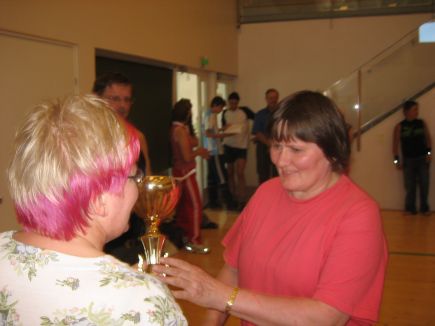 Kuvassa NA-sarjan voittaja niiaamassa ykköspalkintoa.