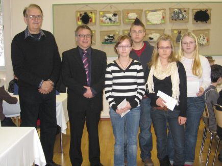 ![]() Valtakunnallinen matematiikkakilpailuIso-Nopolan koululla kilpailtiin 9.luokkalaisten kesken valtakunnallisesta matematiikkakilpailusta. Kaikki 9. luokan oppilaat osallistuivat valtakunnalliseen matematiikkakilpailuun marraskuun aikana. Tänään kilpailun parhaat palkittiin itsenaisyyspäivän lounaan yhteydessä. Kyyjärven Osuuspankin pankinjohtaja Urpo Ojala jakoi lahjashekit matematiikan opettajan Kari Wackliinin kanssa. Ensimmäiselle sijalle tuli Mira Kotanen, toiseksi sijoittui Heidi Pekkarinen ja jaetulle kolmannelle tuli Henriikka Vallivaara ja Tatu Back. Kiitokset Kyyjärven Osuuspankille palkinnoista ja onnittelut kilpailuissa hyvin sijoittuneille oppilaille. |