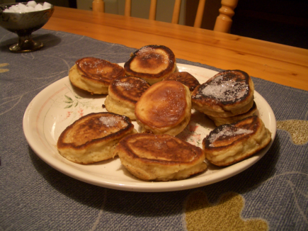 ![]() PiimäpullaRuokaisa kahvileipä. Kahvia juodessa tuli mieleen anopin paistamat piimäpullat, joten kilautimpa anopille kysyäkseni ohjetta, mitä aineita niihin tulee. No, anoppihan ei puhelimessa niitä kertonut mutta tuli paikanpäälle kädestäpitäen vävypoikaa neuvomaan. Tein siinä piimästä ja jauhoista ym. taikinan ohjeiden mukaan ja aloin paistella niitä pannulla, hyviä tuli joten paistampa töissä porukalle kahvileivät. Työpaikalla touhulassa oli hieman epäileviä ilmeitä kun saavuin leipomistarvikkeiden kanssa keittiöön, se piimä herätti eniten ihmetystä. Myssy ja esiliina päälle ja tarvikkeet levälleen, kymmenkunta silmäparia seuraa hieman epäillen touhujani, mutta reilun tunnin kuluttua leivonnaiset valmiina kahvittelijoiden syötäviksi. Maistuvia taisivat olla kun ei yhtään jäänyt. 1/2 l piimä 2 kananmunaa n. 1 l vehnäjauhoja 1 tlk suolaa 2 tlk soodaa (voi laittaa vähän leivinjauhettakin) 1-2 dl sokeria (maustaa voi vaniljasokerilla) Tehdään jäykähkö lusikoitava taikina, ei tahdo irrota lusikasta, sillä se venyy.Paistetaan pistinpannulla 4-5 kökkärettä kerrallaan miedolla lämmöllä että kypsyy sisältäkin. Reilusti voita pannulle kuten ennenvanhaan, jolloin mummojen leivonnaiset olivat tosi herkullisia. |