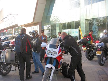 Edellisen illan illallisen yhteydessä olimme kertoneet paikallisille, että meillä on tarkoitus jatkaa matkaa aamulla kello 7. He olisivat halunneet pitää meidät vielä muutaman päivän ja toisaalta olivat hieman ihmeissään miksi niin aikaisin matkaa pitää jatkaa. Aamulla kun pakkasimme pyöriä hotellin edessä yllätyksesemme paikalliset kaverit tulivat saattamaan meitä matkalle. Todella hieno ele heiltä Kun olimme ajaneet muutaman tunnin oli tiellä mielenkiintoinen kohta. Siinä päällystetty tie muutui, taas kerran hieman toisenlaiseksi tieksi. Se mikä oli mielenkiintoista oli se noin 20 cm ero näiden tiepintojen välillä, elikkä 20 sentin kynnys toiseen suuntaan ajettaessa. Onneksi olimme tulossa sieltä korkemman tien suunnasta joka ainoastaan aiheutti sen, että Gunther:n takaboksi tipahti tielle. Boksin kiinnitys telineeseen oli pettänyt. Gunther ei olisi tätä huomannut ellei Jari olisi asiasta hänelle ilmoittanut walkietalkien välityksellä. Kiinan teillä tapahtuu kaikennäköisiä onnettomuuksia joita on joskus hieman vaikea ymmärtää. Meidän kohdalle sattui yksi sellainen joka vaatisi tutkijalautakunnalta jonkin aikaan ennen kuin todellinen syy selviäisi. Ningxian provinssin jäädessä taakse teimme matkaa alueella jossa kukaan meistä ei aiemmin ollut moottoripyörällä matkustanut. Olimme siirtyneet Gansu:n provinssiin, tietenkin rajamuodollisuudet olivat olleet samat kuin edellisissä vastaavissa paikoissa. Tarkoitus oli ajaa Gansu hyvin nopeasti läpi ja pysähtyä yöksi vasta Xining kaupungissa Qing Hai:n provinsissa. Noin 50 kilometriä ennen Gansu provinssin pääkaupunkia, Lanzhou:ta tie mutkitteli kanjonin tapaisessa maisemissa. Tien kunto oli jotain muuta, oli kuin olisi ajanut vasta kynnetyllä pellolla, erona oli vain se että tämä ’pelto’ oli päällystetty asfaltilla. Nähtävästi tien pohja oli pettänyt johtuen raskaasta liikenteestä, jota on Kiinassa kaikkialla. Petrin kanssa jäimme pikku hiljaa jälkeen muusta porukasta koska pyörien jousitus ei olisi kestänyt yhtään kovempaan ajoa. Sitten tapahtui jotain ylättävää, näin kun noin 100 metrin päässä edessäni pöllähti hiekkaa, Petrille oli tapahtunut jotain. Kun pysäytin pyöräni oli Petri tien sivussa ja pyörä tien poskessa n. 5 metriä syvässä rotkossa. BMW:n etupää oli pettänyt jonka johdosta Petri oli kaatunut. Onneksi Petrin vauriot jäivät murtuneeseen vasemman käden kämmenluuhun. Onneksi Petrillä oli kunnon ajoasu (Rukka) sillä ilman sellaista olisivat vammat olleet varmaankin suuremmat. Esiapuna Petrin käsi desinfioitiin ja lastoitettiin käyttäen apuna työkaluja jotta vioittunut kohta saatiin liikkumattomaksi. Muita vairioita oli joitain pieniä ruhjeita mutta ei mitään suurta. Onnettomuudeksi muut olivat jo hetineet walkie-talkiet toimintasäteen ulkopuolelle ja samalla olimme myös GSM:n katvealueella joten yhteys muihin oli totaalisesti poikki. Jouduimme odottelemaan jonkin aikaa ennen kuin muu porukka havaitsi meidän puuttuvan jonon hänniltä. Muita odotellessamme paikalle pysähtyi jakeluauto ja pian pääsimme heidän kanssa ymmärrykseen, että he voisivat ottaa pyörän kyytiin ja kujettaa sen Lanzhou:n kunhan kustannuksista sovitaan. Kun olimme kaikki taasen yhdessä onnettomuus paikalla tehtiin suunnitelma jossa Tatu ajoi ensiksi kaupunkiin ja etsi meille hotellin ja muut seuraisimme jakeluautoa ja kertoisimme kuljettajalle mihin hotelliin hänen tulisi ajaa. Pienten kommelluksien jälkeen pääsimme vihdoin hotelliin, Lanzhou nimittäin ei muuten oli mikään pikku kaupunki. Petri kävi paikallisessa lääkärissä mutta totesi, että on parempi mennä takaisin Pekingiin kunnon sairaalaan. Ilalla murheellisin mielin söimme illallisen, sillä ryhmä jonka tarkoitus oli saavuttaa Tiipet yhdessä vähentyi nyt yhdellä. Petri lensi takaisin Pekingiin seuraavana päivänä ja me muut taasen jatkoimme matkaa kohti seuraavaan provinssia, joka on Qing Hai. Matka jatkui ja pian olimme Qing Hai:n provinsissa, joka on Tiipetin pohjoispuolella oleva suuri ja vähän asuttu provinssi. Qing Hai:ssa alkaa olla jonkin verran Tiipetin tuntua sillä provinsissa on paljon aktiivisia Tiipetin buddhalais-temppeleitä. Esimerkkinä uskonnon harjoittamisesta oli yksi pyhä puu joka kasvaa keskellä tietä katkaisten toisen kaistan kokonaan. Myös mielenkiintoinen tehdas nähtiin, joka osallistui näyttävästi ilman saastuttamiseen. Yön vietimme Xining:n kaupungissa Qing Hai hotellissa ja seuraavana päivänä jatkoimme matkaa kohti Golmud:in kaupunkia, paikkaa josta lähtee ainoa pohjoisesta Tiipetin suuntaan menevä tie Aamulla kohti Golmud:ia. Tähän osuuteen sattui pieni mielenkiintoinen tapahtuma, nimittäin yksi pitkä osuus jossa asumusta ei liiemmin ole. Yhdessä vaiheessa bensan loppuminen alkoi olla suurin huoli sillä paikoissa joista olimme sitä tiedustelleet oli bensa loppunut tyystin. Onni oli meidän matkassa sillä paikassa josta emme uskoneet sitä löytävämme, löytyi jotain mikä vastasi bensalle annettuja speksejä. Mitä oktaania se oli, ei siinä tilanteessa enää huolettanut. Ennen kuin pääsimme jatkamaan matkaa oli paikattava X11:sta taka rengas joka oli ’huoltoasemalle’ tultaessa puhjennut. Ilalla olimme Golmud:ssa jossa oli tarkoitus viettää muutama päivä jotta sopeutuisimme paremmin korkeaan ilmanalaan sekä tekisimme tarvittavat säädöt pyörien kaasuttimille. |