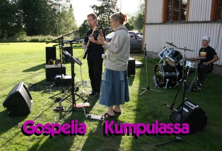 ![]() Gospelia Kumpulan koulullaPerjantai-iltana kajahti Kumpulan koulun pihalla Gospel-musiikki. Eikä menoa haitannut edes kova tuuli. Jari Kuusi sähkökitarassa, Jarin poika rummuissa ja Anneliina Keisala bassossa. Tällä kokoonpanolla saatiin kuulla itse tehtyjä sekä muidenkin Gospel-kappaleita. Hyvin tuo sujui ilosanoman (Gospel) julistaminen koko porukalta. |