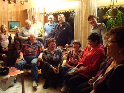 ![]() Saunakylän kinkerit oli Heloahossa"Kevätmyräkkä" oli parhaimmillaan, kun kokoonnuimme Heloahoon kinkereille torstai-iltana 24.3.2011. Matti isäntä oli pari kertaa ennen kinkereitä aurannut tien ja hyvinhän me päästiin perille kinkeritaloon. Juttu luisti kinkereillä. Puhuttiin kinkeriaiheista ja vähän muustakin. Mielenkiintoinen vanha valokuva seinällä puhui meille Heloahon suvun historiasta, jota Matti meille tarkemmin selvensi. Kirkkoherra puhui Raamattu ja katekismusaiheesta. Yhdessä keskusteltiin aiheesta: "pyhä". Pyhäpäivä koetaan vieläkin tärkeäksi. Jumala, Jumalan sana, kirkko, kirkolliset toimitukset ovat pyhiä yhä edelleenkin. Kanttorina toimi Saima Kytölä ja diakonissa Riitta Kytölä puhui vuoden 2011 yhteisvastuukeräyksen kohteista. Hän kirvoitti meitä myös ajatuksiin yksinäisyydestä. Seurakunnan itsenäisyys koettiin merkittäväksi asiaksi. Seurakunnan ilmoitukset Torstai-lehdessä on aivan ok juttu. Säästö on tuntuva. Muualla asuvat Viispiikkisen tilaajat ovat asiasta pahoillaan. Päätettiin kokoontua täydenkuun aikana toukokuussa 19.5.klo 19 Valkeislammen kodalle pitämään yhteisvastuujuhlaa. Heinäkuussa sunnuntaina 17.7.klo 11 pidetään jumalanpalvelus Valkeislammen kodalla. Todettiin myös, että jos jotain muutoksia tulee niin tässä Nopolanewsissä ne voi nopeasti ilmoittaa. Kiitoksia isäntäväelle, Matille ja Inkerille, kinkereistä ja hyvistä tarjoiluista! Epäilyksistä huolimatta selvisimme kinoksista kotiin aivan normaaliin aikaan, eikä muutkaan vieraat tainneet jäädä myrskyn kouriin. |