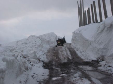 ![]() Moottoripyörällä Tiipetiin (10)Andunkur Daban solan ylitys. Kun olimme ajaneet vajaa 300 kilometriä Yining:stä tie alkoi nousta yhä korkeammalle ja hetken päästä alkoi lumihuippuisia vuori olla näkyvissä. Olimme tulossa Andunkur Daban solaan joka on 2900 metriä merenpinnan yläpuolella. Tästä meidän matkan ehkä vaikein osuus sitten alkoi.