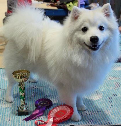 Vihdoin helmikuun alussa Nicolla oli pentuluokan ikä täynnä ja oli aika matkustaa Keuruulle koiranäyttelyyn. Siellä japaninpystykorvien tuomarina oli Anneli Sutela. Urospentuja oli ilmoitettu kaksi. Nico voitti kilpakumppaninsa ja sai kunniapalkintoruusukkeen. Sitten piti odottaa, kun Nicon Sera-sisko kilpaili toisen narttupennun kanssa. Sera jäi toiseksi, mutta voittanut narttupentu sai kunniapalkinnon ja niin Nicon piti kilpailla sen kanssa siitä, kumpi on rodun paras pentu. No Nicollehan se tuomari toi ROP-pentu-ruusukkeen ja sitten Anna sai lähteä arvostelulipukkeen kanssa hakemaan pokaalia näyttelytoimistosta.