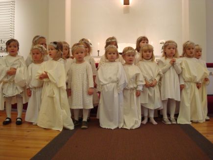 ![]() Enkeletä oli kirkossaEnkeliä oli kirkossa kaksi penkillistä ja he lauloivat meille perhejumalanpalveluksessa. Enkelikirkon jälkeen joimme MLL:n tarjoamat kirkkokahvit enkelien kanssa. Päiväkerholaisten lisäksi lapsikuoro lauloi enkelikirkossa. Enkelit on Jumalan luomia ja kuuluvat näkymättömään maailmaan. Joskus enkelit näyttäytyvät niin kuin Raamatussa kerrotaan ja jotkut ihmiset ovat nähneet. Me, jotka emme ole nähneet, olemme kokeneet enkelien ihmeellistä johdatusta ja suojelua. Kaikilla lapsilla on suojelusenkeli. Siksi kannattaa vaeltaa Jumalan lapsena Taivaan Isän hyvässä suojeluksessa. Kun Jeesus palaa viimeisenä päivänä taivas täyttyy enkeleistä, Mikael ylienkeli puhaltaa pasuunaan. Silloin sinäkin, joka et ole nähnyt enkeleitä, näet niitä taivaan täydeltä. Martti Lutherin kanssa saamme rukoilla: "Minä kiitän sinua Taivaallinen Isä, että olet suojellut minua. Lähetä tänäkin päivänä pyhät enkelisi minua suojelemaan, ettei paha saisi minusta minkäänlaista valtaa..." |