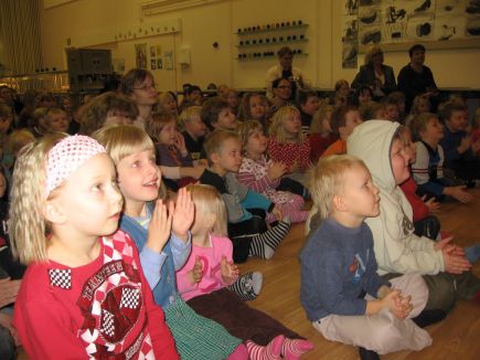 ![]() Päivähoitoväki ja Pellekaija PumOnnellista joulunaikaa... Lapset odottivat esityksen alkua jännittyneenä. "Onko tämä pelottavaa..." kyseli yksi lapsista. Mutta verhojen auettua ja ensimmäisen laulun tahdit kuultuaan, ei kukaan enään pitänyt tilaisuutta pelottavana. Yhtye oli pukeutunut iloisesti ja värikkäästi, joka myös osaltaan herätti lasten kiinnostusta. Tirehtööri, Hanslankari ja Pellekaija lintu johdattivat laulun sanoin lapsia joulunodotukseen. Oli joulusiivousta jenkan tahtiin, joulusaunaa lumessa piehtaroinnilla maustettuna, Jonttu-Tonttua joulukirjeineen sekä joulutwistiä ja -sambaa. Lapset ja myös hoitajat olivat esityksessä täysillä mukana. Joulu-twisti varsinkin sai isot sekä pienet liikkumaan reippaasti musiikin tahtiin. Kaikki kuitenkin päättyy aikanaan. Hurjin suosionosoituksin kiitimme Pellekaija Pumia ja siirryimme Muksulan tiloihin harjoittelemaan omaa joulujuhla esitystä. Uskon, että Pellekaija Pum oli vielä monenkin lapsen puheenaihe kotiväelle. Itse toivotan Muksulan väelle onnellista joulunaikaa, sillä viimeinen työharjoitteluviikko on menossa ja taas on aika siirtyä koulunpenkille. Teitä kaikkia tulee kauhean ikävä. Oli mukavaa olla nämä neljä viikkoa kanssanne. Jäi paljon ihania muistoja.