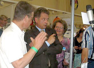 Kuvassa Sauli Niinistö antamassa haastattelua Nopola News nettiradioon Suomenselkämessuilla.