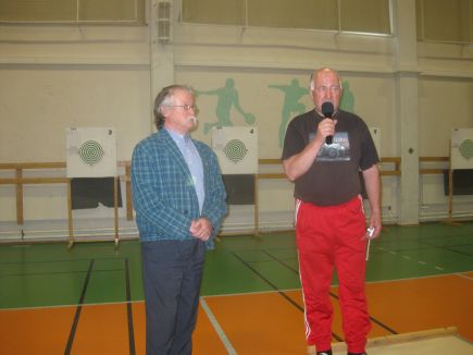 Lauantaina heitetyn kilvan avasi Äänekosken kaupungin liikuntasihteeri Jorma Kinnunen (kuvassa vasemmalla) Kisojen järjestäjän Sisä-Suomen tikan "puuhamies" Jaakko Kontola on STURL:n puheenjohtaja.