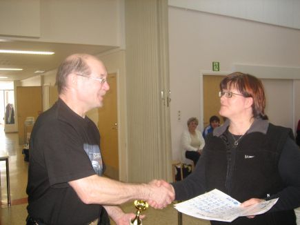 ![]() Kyvyn Anne Mäntynen toiseksiMA-sarjan Teijo Hakulinen 1030 p SST:n Teijo Hakulinen heitti kovan tuloksen ja myös kolmannen kiinnityksen MM-sarjaan, joten Teijolla on ensi vuonna huippusarja ja siinä huippuseuraa. Mäntysen Annelle tuli nyt toinen kiinnitys NA-sarjaan tuloksella 968. NA-sarjan voitti KTS:n Sinikka Hyvönen hyvällä tuloksella 1005 p. Nuorten B-sarjassa Kyvyn Jani Mäntynen oli ykkönen ja MC-sarjassa Toivo Kuusinen 8:sas ja Alpo Viitala 9:säs. Kilpailun päätyttyä pidettiin STURL Keski Suomen Piirin kevätkokous. Kevätkokouksen puheenjohtajana toimi Alpo Herkman , joka vei mallikkaasti rutiini asiat läpi. Kyseessä oli Kyyjärvellä ala-asteella piirikunnallinen 125 tikkaa. jossa 40 heittäjää. |