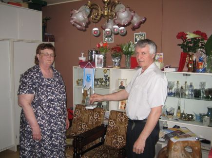 ![]() Airi Kujala 60 vuottaKyyjärven Kyky muisti Airia viirillä Airi Kujala täytti pe 25.05.2007 60 vuotta. Kyvyn viirin, kukkaset ja pienen paketin sekä onnittelut päivänsankarille toi Kyvyn hallituksen jäsen ja Yhdistelmäjaoston puheenjohtaja Alpo Viitala. Airi on tuttu näky seuran eri tapahtumissa, usein arpoja myymässä ja näin osaltaan tukemassa Kyvyn ehkä tärkeintä tukijalkaa :taloutta. |