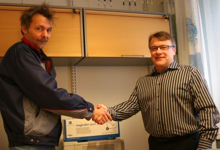 ![]() Paikallisosuuspankki vahvasti mukana Mediamyllyn toiminnassaPankki lahjoitti mylläreille värilasertulostimen, skannerin ja muuta pientavaraa. Kyyjärven paikallisosuuspankin johtaja Urpo Ojala soitti ja kysyi, olisiko myllyllä tarvetta pankin käytössä tarpeettomiksi jääneille tietoteknisille laitteille. Totta kai oli, sillä jo pitkään oli mietitty esimerkiksi esitteiden ja mainosmateriaalien väritulostusta. Lahjoituksen myötä ongelma ratkesi kertaheitolla. Myös skannerille oli tarvetta, sillä tähän saakka Irma on käyttänyt omaansa skannaillessaan vanhoja valokuvia, yritysten logoja ja muuta materiaalia Nopola Newsin sivuille. Lahjoitusta vastaanottamassa olivat Kyyjärven Mediamyllärit ry:n uusi puheenjohtaja Erkki Koivisto, yhdistyksen työntekijä Irma Mäkelä sekä yllekirjoittanut. Verkkopankki -koulutusta luvassa Jo aiemmin pankki on ollut mukana Mediamyllyn toiminnassa sijoittamalla seitsemän muun yrityksen tavoin luokkaan tietokonelaitteiston, jota vastaan luokka on tarvittaessa yrityksen käytössä. Pankin ja mylläreiden lähiajan tavoitteena on järjestää luokassa verkkopankin käyttökoulutusta. Kolutustarvetta näyttäisi olevan, sillä etenkin ikääntyvältä väestöltä ja tietokoneiden käytön vast'ikään aloitteneilta on tullut kyselyjä kyseisen koulutuksen järjestämisestä. Mediamyllärit varaa tilan ja laitteet, pankki kouluttajan. Mielestämme jälleen loistava esimerkki yrityksen ja kolmannen sektorin toimijan yhteistyöstä, josta hyötyvät kaikki osapuolet. Ideoinnissa on hauskaa se, että aika äkkiä mopo karkaa käsistä. Niin nytkin, sillä puheissa vilahteli jo sijoitusiltamien järjestämistä sun muuta. Mutta verkkopankki -koulutuksella kuitenkin aloitetaan. Tarkemmat ajankohdat ilmoitetaan Nopola Newsin sivuilla myöhemmin. Kyyjärven mediamyllärit ry kiittää lämpimästi paikallisouuspankkia lahjoituksesta ja toiminnan tukemista. Tästä on taas hyvä jatkaa. |