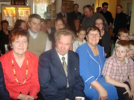 Arvo Ulvo syntyi 5.2.1940 Soinissa. Hänen isänsä oli suomalaisten miesten tavoin puolustamassa isänmaatamme 70 vuotta sitten. Arvo ei isäänsä nähnyt, sillä hän antoi kaikkensa isänmaalle. Helena ja Arvo Ulvo muuttivat Kyyjärvelle v.1979 ja ostivat Peltolan talon. He raivasivat, ostivat lisää maata ja ovat viljelleet tilaa siitä lähtien. Peltolassa on ovet olleet "auki" kyläläisille, vieraille ja seurakunnan toiminnalle. Samalla, kun vietimme Arvon 70-vuotisjuhlaa oli Oikarin kylän kinkerit. Kinkeritunnelma oli kuin ennen vanhaa, sillä talo oli täynnä niin nuorempaa kuin vanhempaa väkeä. Kinkerien lomassa laulettiin Arvon lempivirsiä ja Arttu poika soitti sellolla papalle onnittelulaulun. Kiitoksia Helena ja Arvo Ulvolle hienosta juhlasta ja Taivaan Isän johdatusta koko perhekunnalle tuleviin päiviin! |