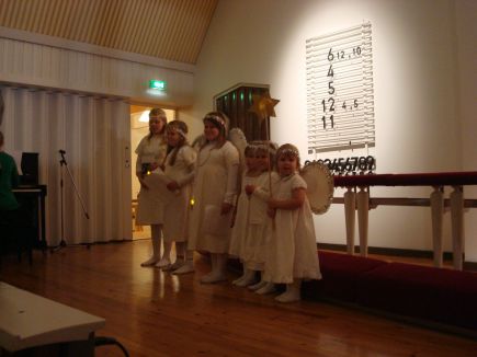 ![]() Lasten Joulujuhla kirkossaLasten iloiset esitykset ja laulut toivat aidon ja todellisen joulun tunnelman torstai-iltana 15.12. mieliimme. Varhaisnuorten kerholaiset esittivät joulukuvaelman Heta-Leena Vallivaaran ja Saima Kytölän johdolla. Riitta Kytölä luki jouluevankeliumin ja Lotta Vallivaara säesti kuvaelman laulut. Päiväkerholaiset lauloivat ja leikkivät pariin otteeseen. Lapsikuoro lauloi kaksi laulua. Kanttori Minna Erkkilä johti kuoroa ja säesti yhteislaulut. Lastenohjaaja Kirsi Pohjoiskangas juonsi juhlan ja ohjasi kerholaisten lauluja. Khra Olavi Vallivaara puhui Jeesus-lapsesta ja hänen tuomastaan pelastuksesta. Lopuksi juotiin joulukahvit ja mehut herkkujen kera. Kerhoissa alkoi joululoma. Päiväkerhot jatkuvat taas joulun jälkeen 10.1.2012 alkaen. |