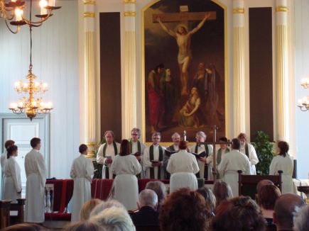 ![]() Jari Kuusi vihittiin papiksiKyyjärven seurakunnan entinen kanttori Jari Kuusi vihittiin papiksi Lapuan tuomiokirkossa sunnuntaina 8.6.2008. Filosofian ja teologian maisteri Jari Kuusi vihittiin 11 muun kanssa papiksi. Pappisvihkimyksen toimitti Lapuan hiippakunnan piispa Simo Peura avustajineen. Jari sai määräyksen toimia Karstulan seurakunnan vt.kappalalaisena. Messun jälkeen oli juhla Lapuan seurakuntatalossa ja Vanhassa Paukussa. Jarin pappisvihkimystä oli todistamassa linja-autollinen kyyjärveläisiä. Jari asuu edelleen perheineen Oikarilla. Toivotamme Jarille Onnea ja siunausta pappisuralle! |