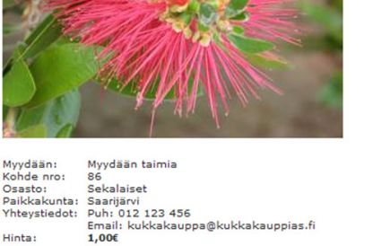 ![]() Osto- ja myyntipalsta NopolaNewsiin?Viisaankivi –seutuportaali ja NopolaNews ovat suunnitelleet yhteistyötä seutuportaalissa sijaitsevan markkinapaikan käyttämisessä. Markkinapaikka on tarkoitettu lähellä olevaksi osto- ja myyntipalstaksi erilaisille käyttämättä tai turhaksi jääneelle käyttökelpoiselle tavaralle. Siellä yksityishenkilöt voivat ilmoittaa maksuttomasti vaikkapa myytävästä autosta, ostettavasta asunnosta tai kierrättää lasten harrastusvälineitä. Yhteistyö tarkoittaisi sitä, että seutuportaalissa näkyvät Kyyjärveä koskevat osto- ja myynti-ilmoitukset näkyisivät myös NopolaNewsin sivuilla. Halutessaan käyttäjä pääsisi myös katsomaan laajempia seudullisia ilmoituksia. Kysymys kuuluukin, että onko Kyyjärvellä tarvetta tällaiselle palstalle? Otan kommentteja asiasta vastaan sähköpostitse tuula.hakkarainen@saarijarvi.fi tai puhelimitse |