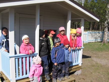 Tiistaina 20.5 päiväkodin väki valmistautui hienoihin juhlallisuuksiin. Edellisenä iltana talkoolaisten avulla päiväkodin pihamaalle oli tuotu uusi, upea leikkimökki. Leikkimökki oli virallisia avajaisia vaille valmis.